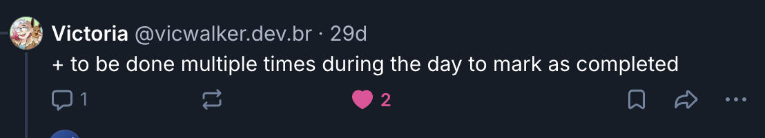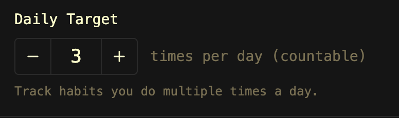 Each tap/click would count as 1 completion. Perfect for tracking things like sets at the gym, glasses of water etc.