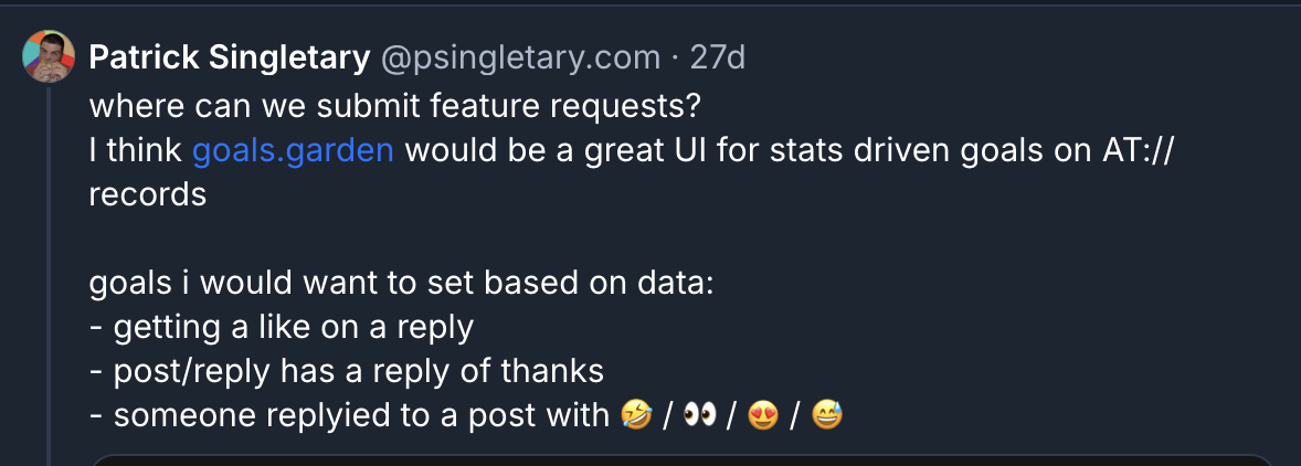 Thanks to everyone who shared feedback in the original goals.garden thread! I've added some of the requested features with this release.